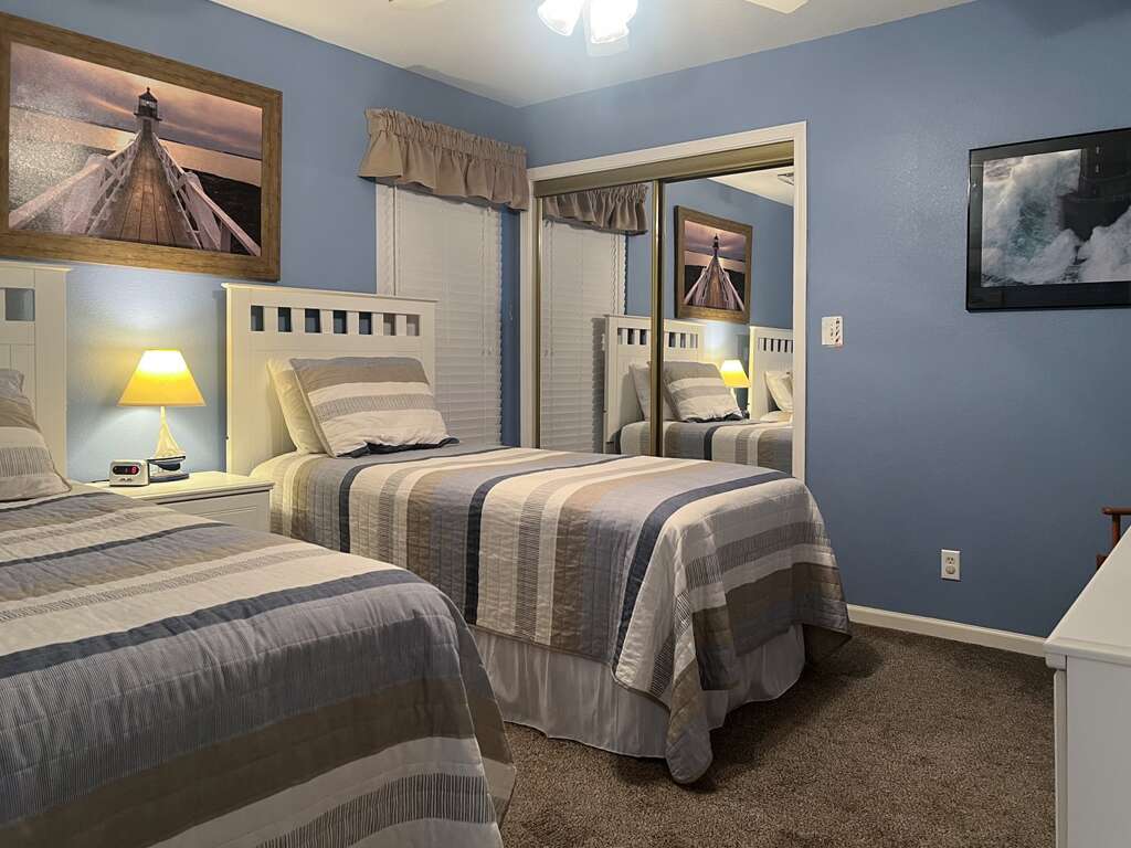 Enjoy a relaxing lakeside getaway at this 2-bedroom, 2-bath waterfront condo located in Lighthouse Landing at Lake of the Ozarks. The master bedroom features a comfortable king bed, while the guest bedroom offers two twin beds, making it ideal for families or friends traveling together. For additional flexibility, the condo also includes two twin air mattresses for extra sleeping space.