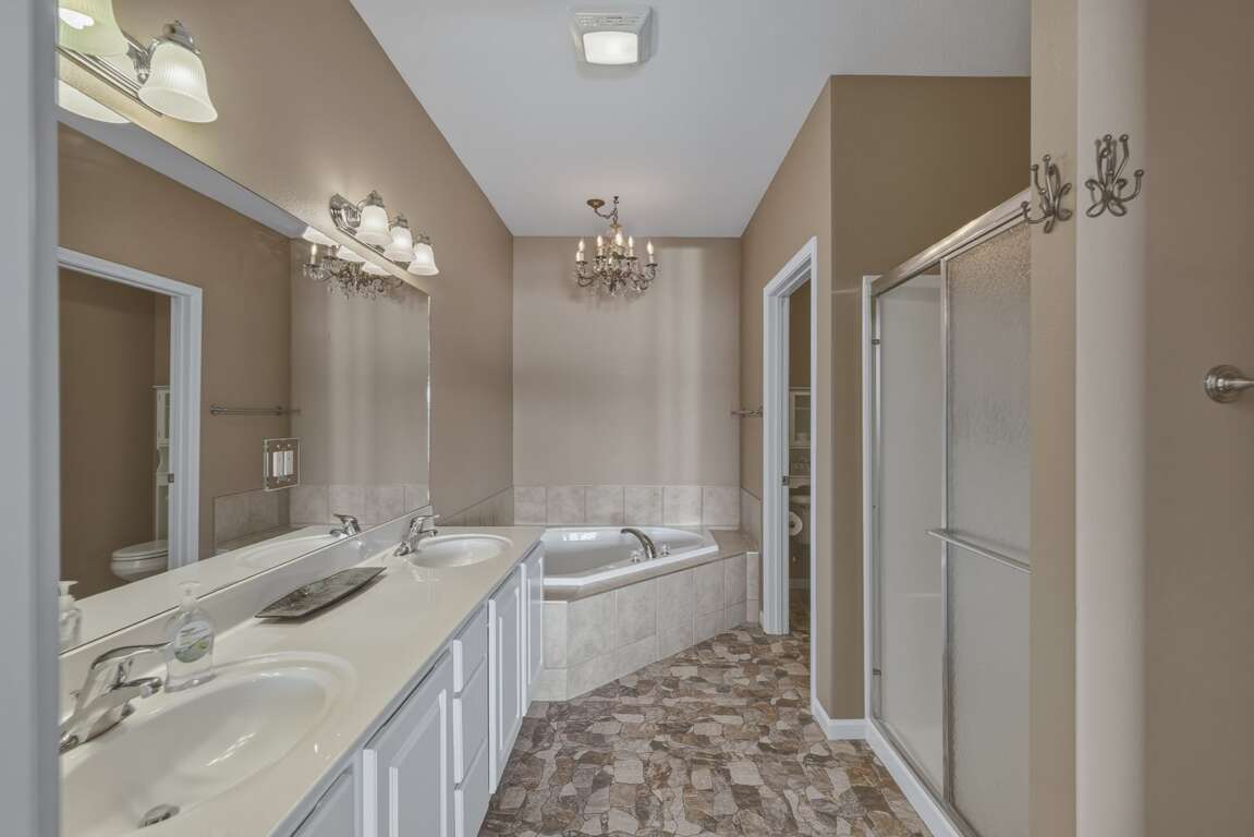 - Bedroom 1 / Master: King - CF - TV, Bathroom 1: Garden Tub, Shower, Double Vanity, Bedroom 2: Queen, Bathroom 2: Tub/Shower Combo, Bedroom 3: 2 Fulls, Extra Sleeping: N/A, Waterfront/2nd Tier: Waterfront, Boat Slip Size: N/A, CoffeePot/SingleServ: Yes / No, Small Appliances: Crockpot