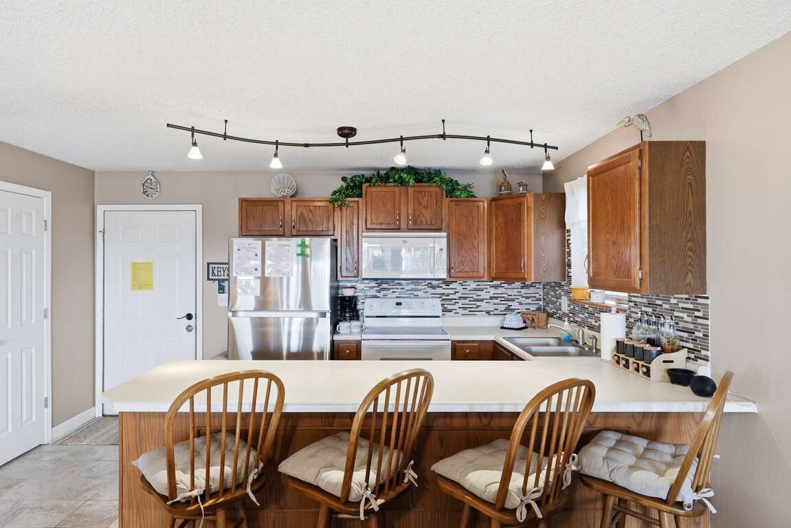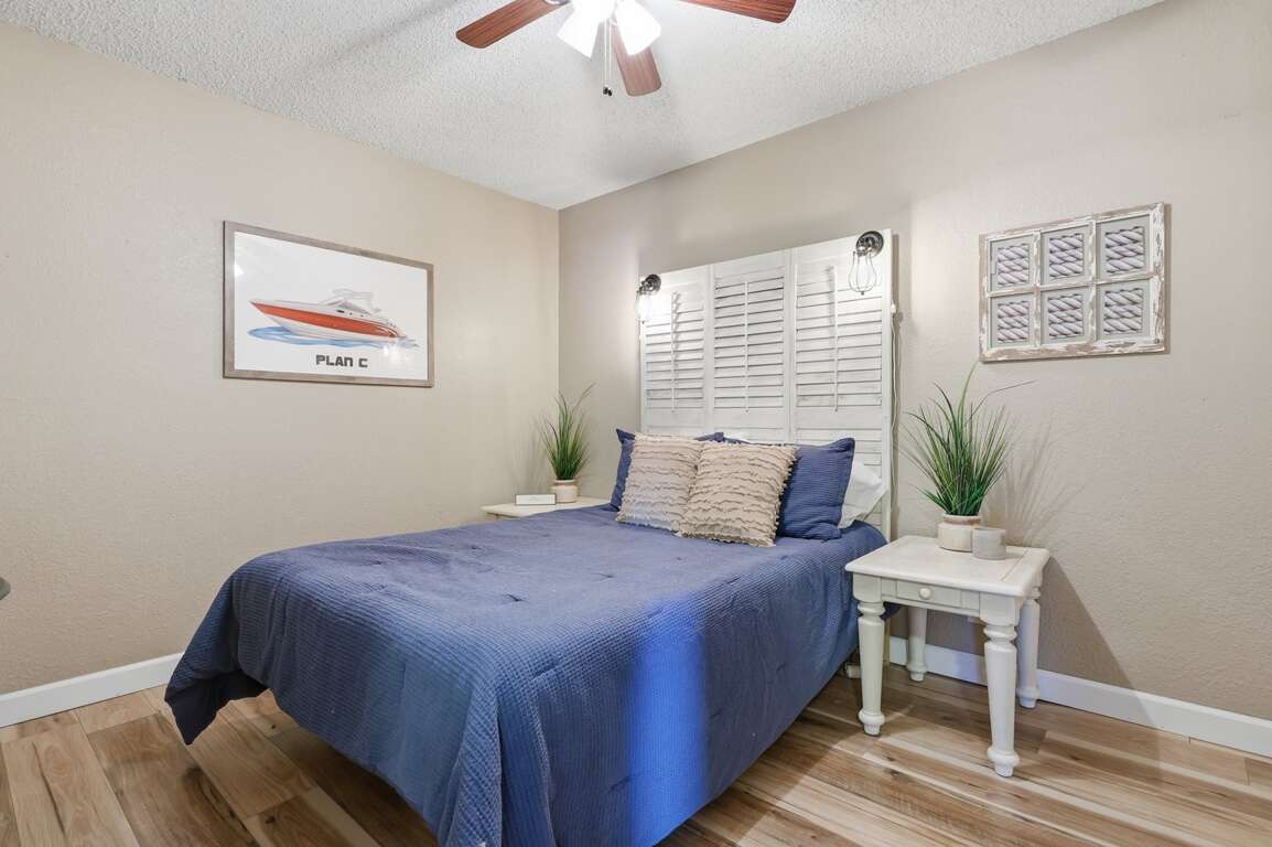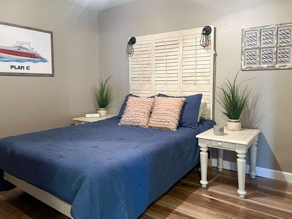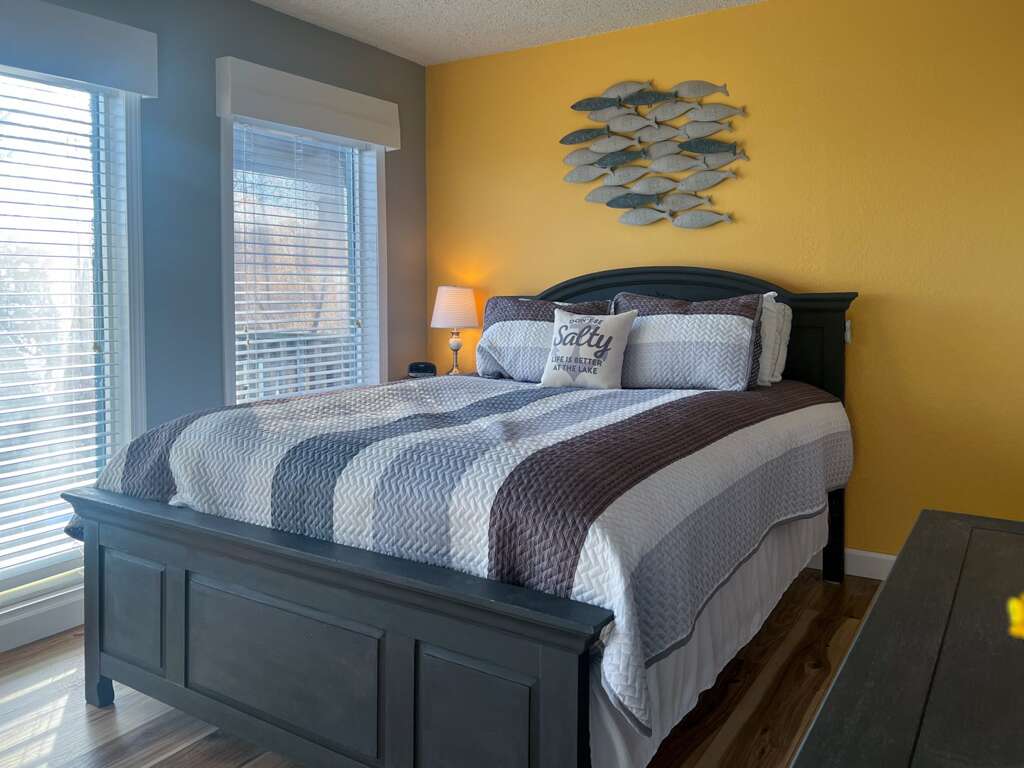 - Bedroom 1 / Master: Queen, Bathroom 1: Tub/Shower Combo, Bedroom 2: Queen, Bathroom 2: Tub/Shower Combo, Extra Sleeping: Queen Futon, Waterfront/2nd Tier: 2nd Tier, Mile Marker: 12 MM - Main Channel, Screened Deck: Open Air, Boat Slip Size: N/A, Steps to Entrance: 1 Up & 7 Down, CoffeePot/SingleServ: Yes / No, Small Appliances: Crockpot, Griddle, Amenities: Mini Waffle Maker