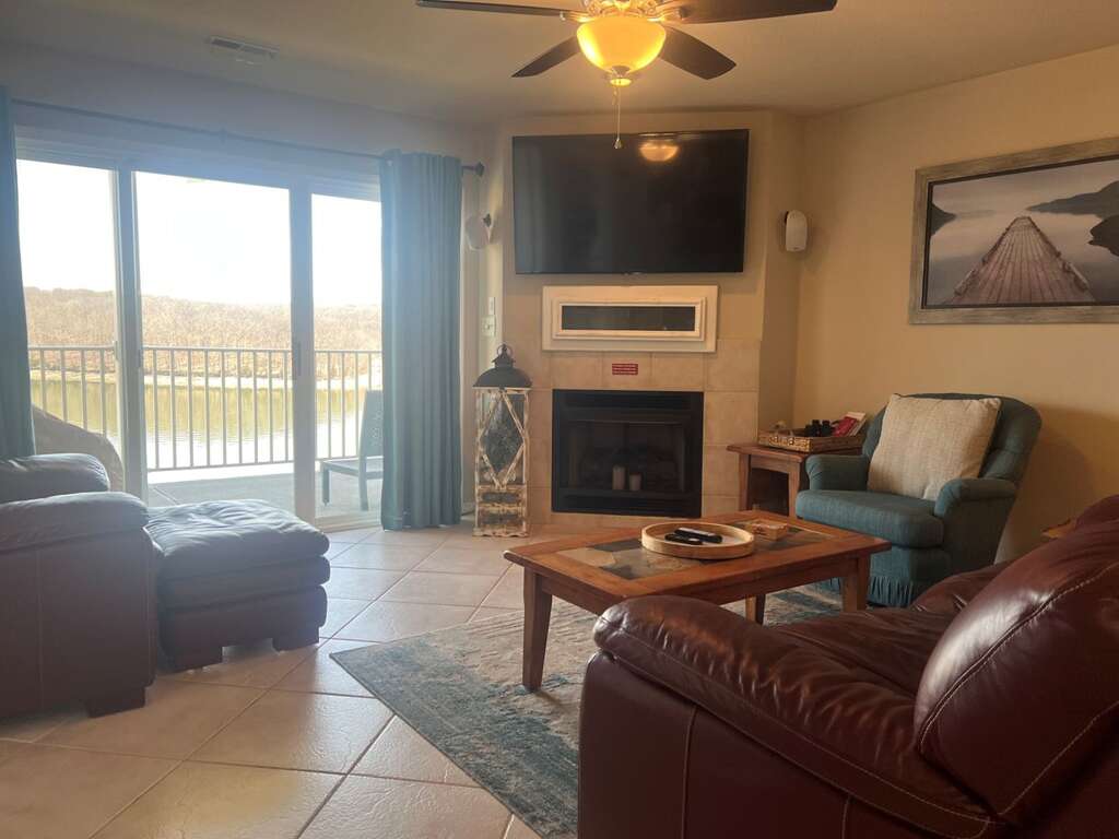 Enjoy a relaxing stay at Parkview Bay Condos in the heart of Osage Beach, where comfort meets a prime waterfront location. This inviting 2-bedroom, 2-bath condo offers everything you need for a memorable getaway, including a king bedroom with flatscreen TV and a queen bedroom, along with two twin air mattresses to accommodate additional guests. The full kitchen is equipped with all major appliances, making it easy to prepare meals and dine in, while the open living area provides a comfortable space to unwind after a day on the lake.
