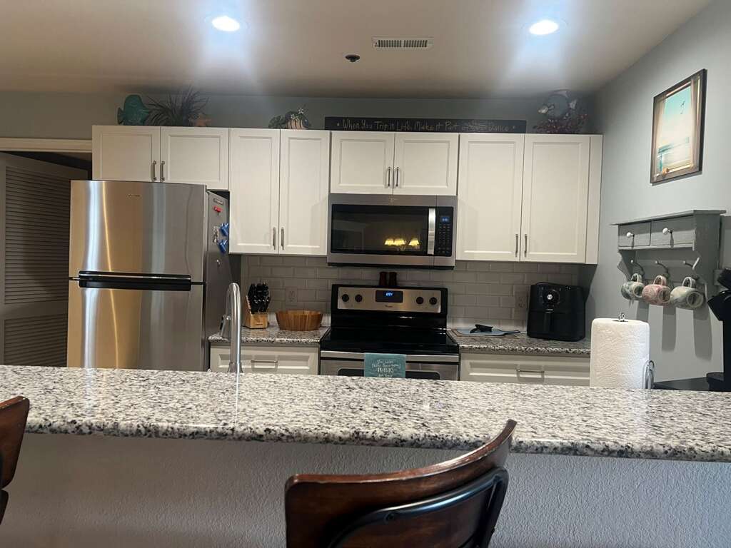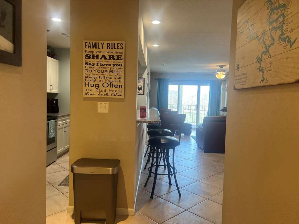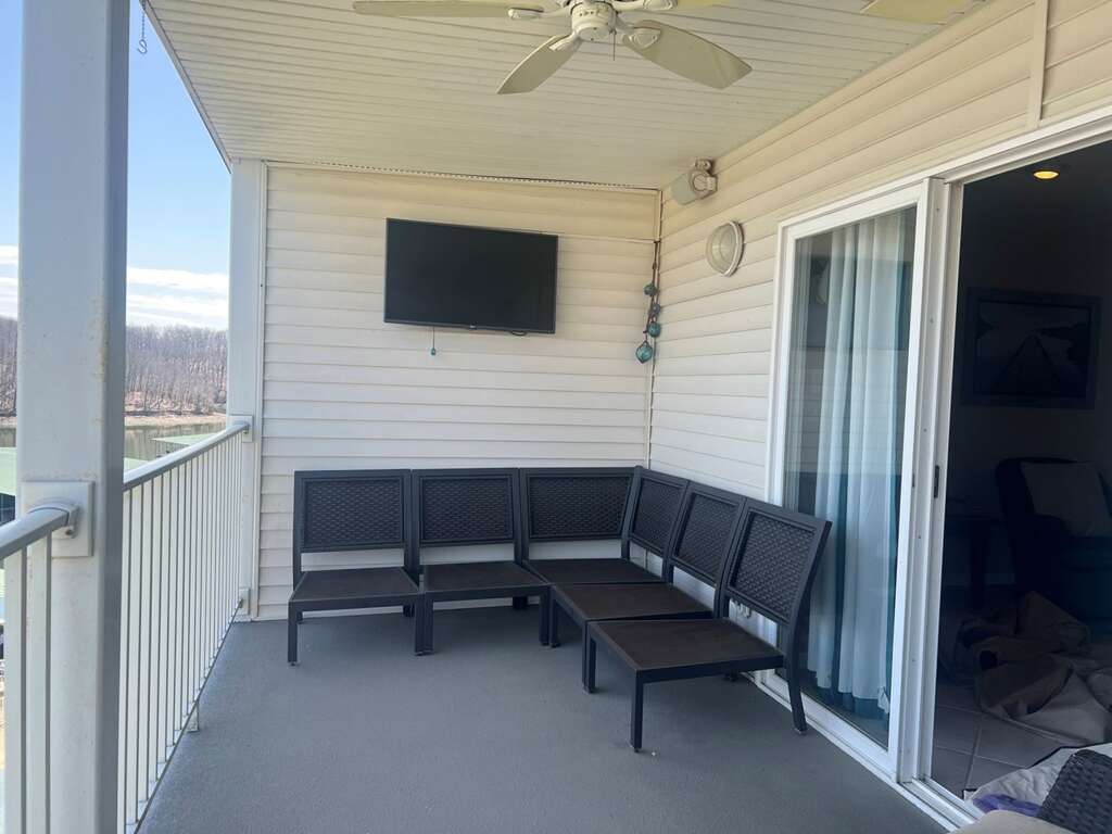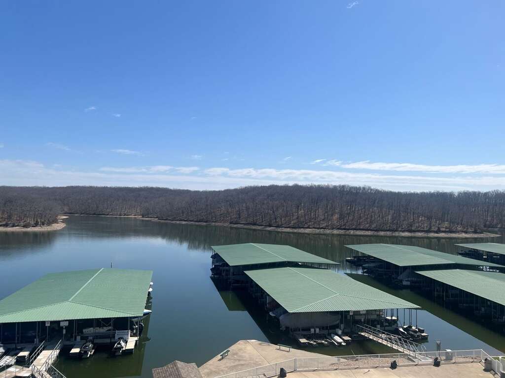 - Bedroom 1 / Master: King, Bathroom 1: Tub & Shower Combo, Bedroom 2: Queen, Bathroom 2: Shower, Extra Sleeping: 2 Twin Air Mattresses, Waterfront/2nd Tier: Waterfront, Mile Marker: 1.5 Grand Glaize Arm, Screened Deck: Open Air Deck with TV, Boat Slip Size: 12 x 30, Steps to Entrance: 16 Steps Up or Elevator, CoffeePot/SingleServ: No / Yes, Small Appliances: Air Fryer, Griddle, Crockpot, Amenities: Toaster, Handheld Mixer, Amenities.: Kids Toys, Books, Board Games